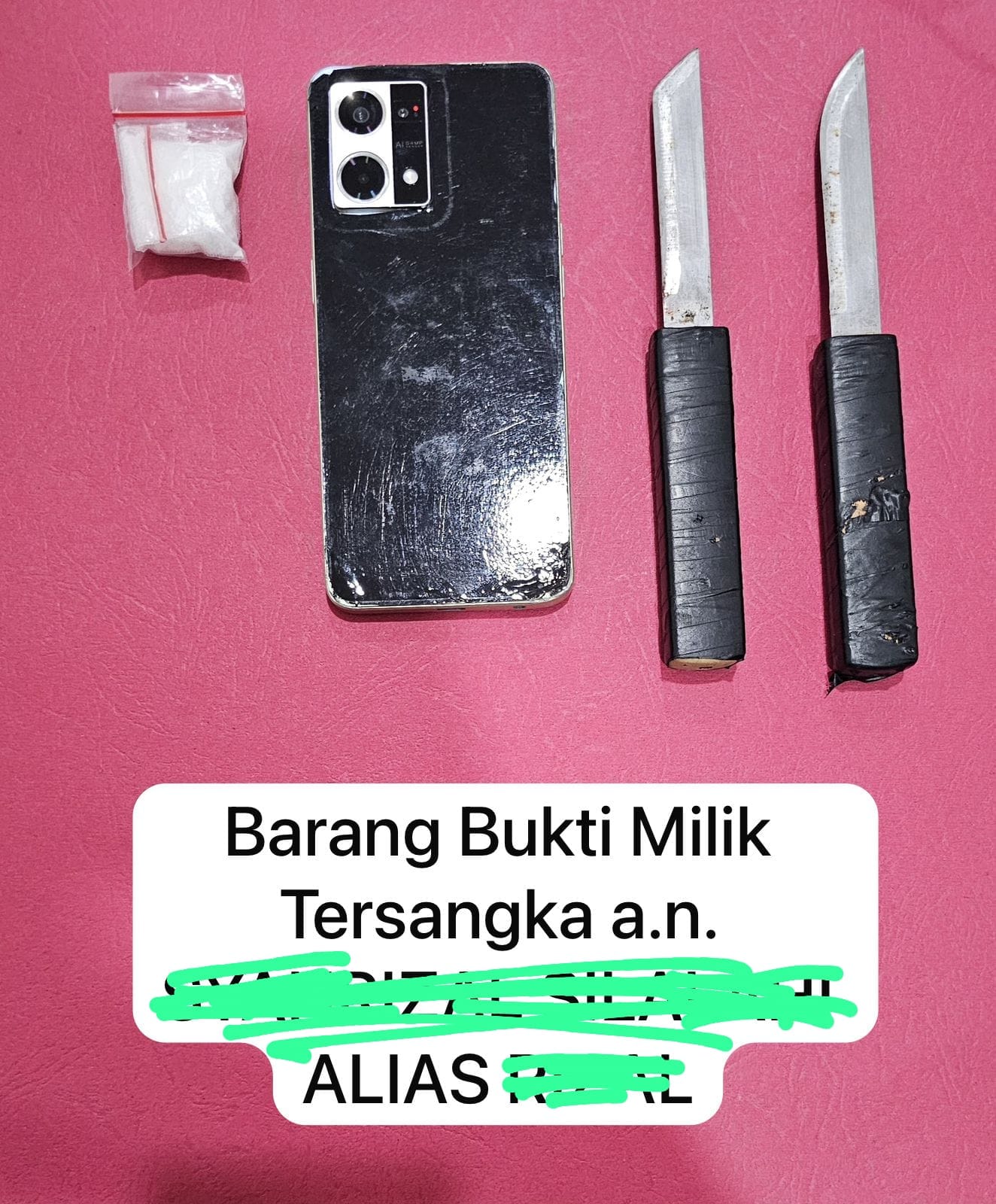 Meskipun terluka, personil Sat Narkoba masih mampu menjatuhkan dan melumpuhkan RS, Kemudian dibantu anggota lainya membantu penangkapan tersangka, yang selanjutnya diamankan oleh anggota lainnya. Setelah dilakukan penggeledahan terhadap tubuh tersangka RS, ditemukan barang bukti berupa satu bungkus plastik klip berisi narkotika jenis sabu seberat 7,83 gram brutto. Selain itu, turut diamankan pula barang bukti berupa satu unit handphone Oppo warna hitam, satu unit sepeda motor Vixion warna putih dengan nomor polisi BK 6467 MAH, serta dua buah pisau warna hitam.